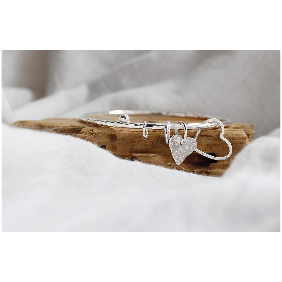 2mm Beaten Heart & Turquoise Bangle